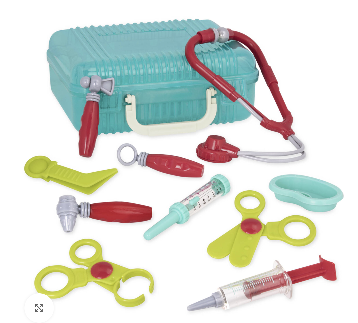 - 11-Piece Set: Includes doctor’s case, toy stethoscope, toy thermometer, toy syringe, pair of toy scissors, and more!