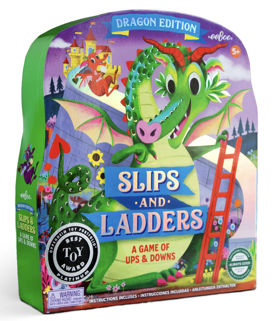 Artists Kevin Hawkes and Linda Bleck reimagine this classic game with whimsical dragons. Holographic foil adds shine to the cover, board and playing pieces. Land on a slide and slip to a lower square; land on a ladder and climb toward the finish line!